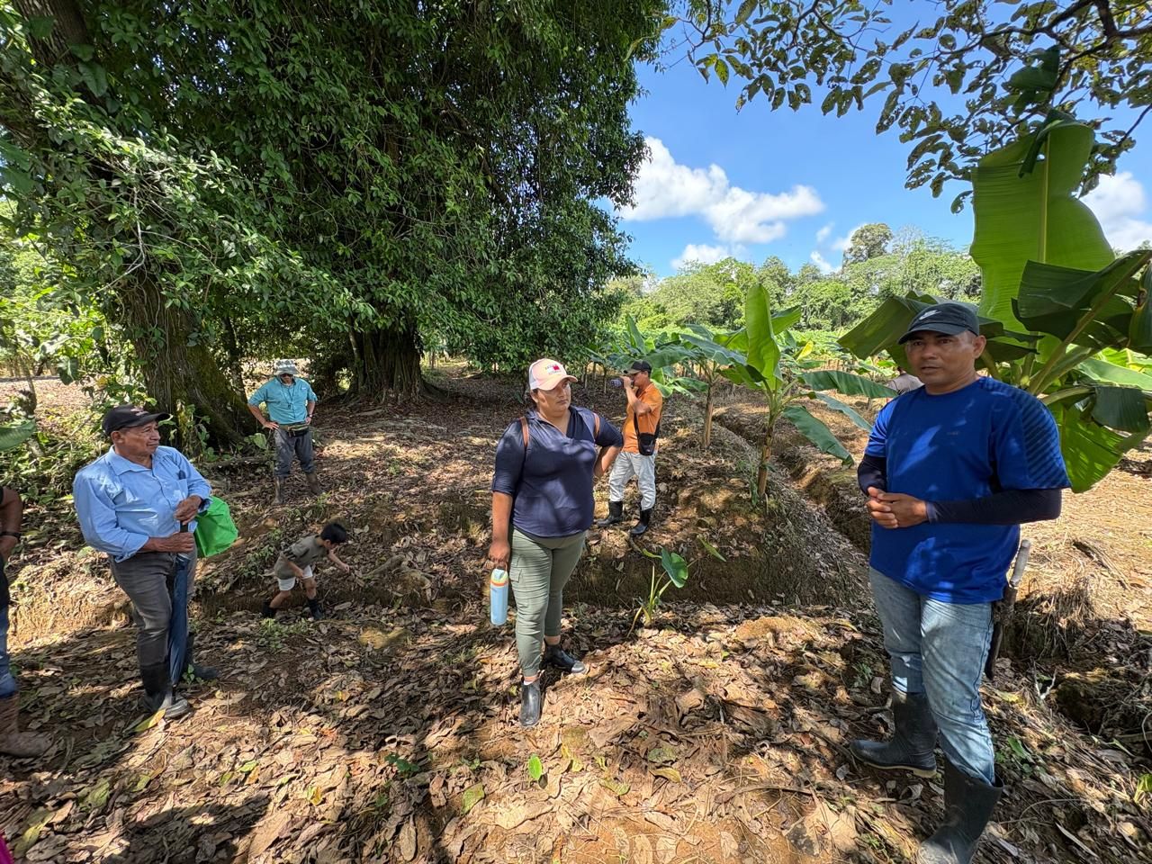 En una mañana húmeda y cálida de octubre, un grupo diverso de personas —productores, técnicas de campo, líderes comunitarios— se reunió en Sarapiquí con una misión clara: aprender de la tierra, de la experiencia y de quienes la trabajan con constancia. El anfitrión era Don Tomás Solano, un agricultor con décadas de trayectoria, cuya finca se ha convertido en un verdadero laboratorio vivo para conocer la Adaptación basada en Ecosistemas (AbE).