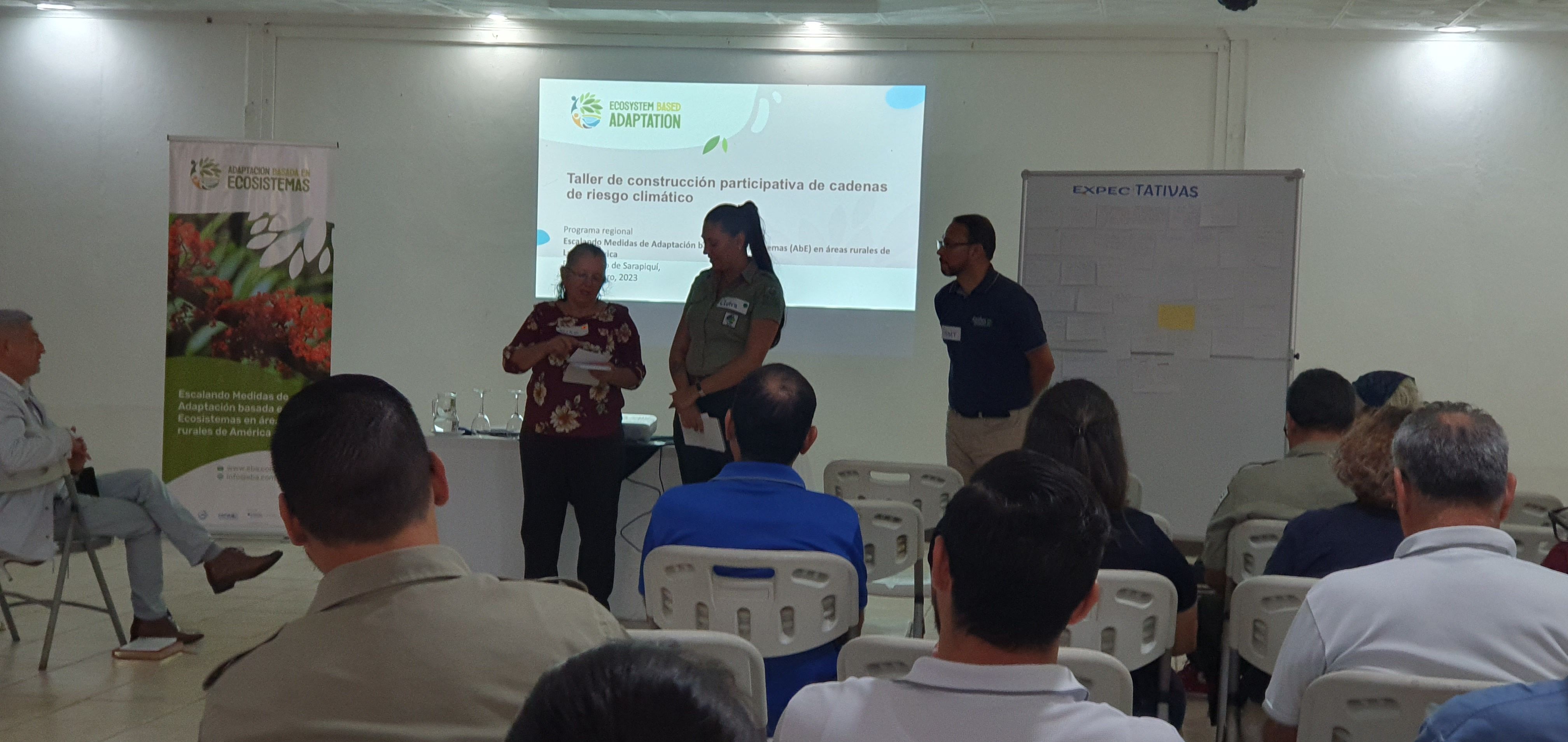 28 de febrero 2023. El equipo del programa regional Escalando Medidas de Adaptación basadas en Ecosistemas en América Latina rural (EbA LAC) trabajó con actores institucionales y organizaciones de personas productoras de Sarapiquí, Costa Rica, en el proceso de evaluación de riesgo climático correspondiente a los cantones de San Carlos, Sarapiquí, Guácimo y Pococí, lugares donde opera actualmente el programa dentro del territorio costarricense.